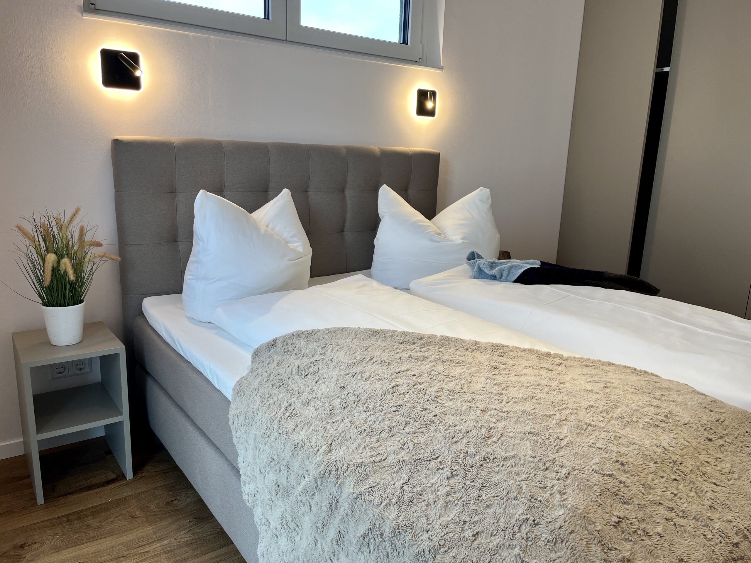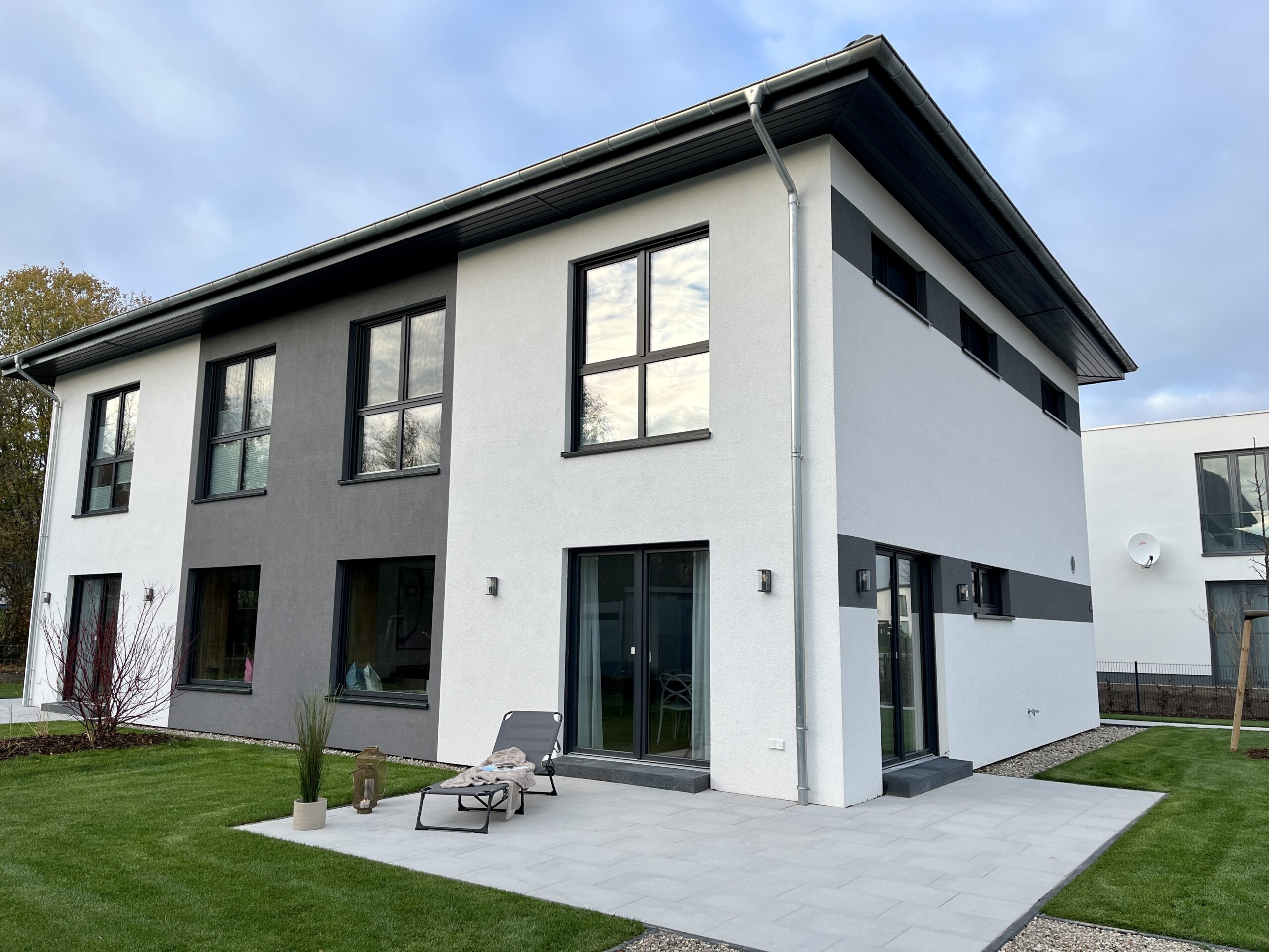 In zwei spiegelbildlich baugleiche Doppelhaushälften aufgeteilt, erwartet Sie exklusiver Komfort auf jeweils 140 m² Wohnfläche. Platz genug für 12 Personen und Babybett.
